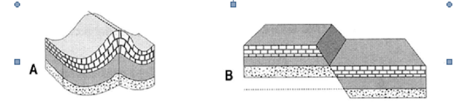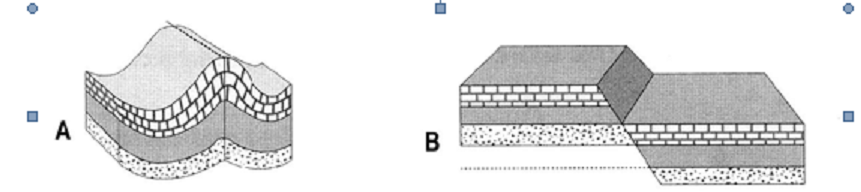 esquemas da figura 2 podes observar dois tipos de deformações das rochas.